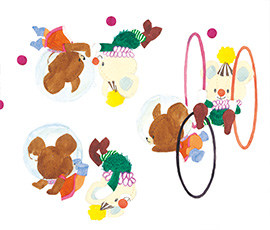 森でふしぎなとんがりぼうしみたいなふしぎなものを見つけたジャッキー。中に入って目の前のぼうをひっぱってみると、なんと宇宙へひとっとび!月についたジャッキーはピエロの男の子、ビリーに出会います。ふたりっきりのサーカスのはじまりはじまり。