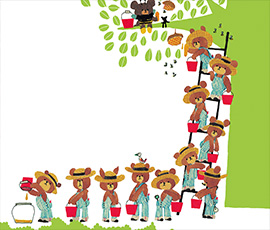 きょうはくまのがっこうバザーの日。くまのこたちはパンやさんをひらくことになりました。みんなで材料を集めて、おいしいおいしいかぼちゃパンのできあがり!と思ったら、ジャッキーがパンの上にジャンプしてしまい…!?