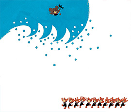 きょうはあさからいいお天気。12ひきのくまのこたちは、じてんしゃりょこうに出かけます。ついたのは青くて広い海。さあみんなで泳ごうと思ったら、ジャッキーがおばけなみにさらわれてしまい…!?ジャッキーの大好きな、しろくまのデイビッドが初登場する絵本です。