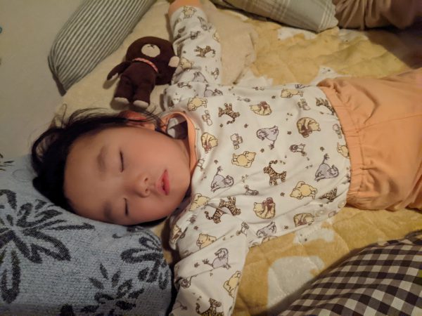 子供を授かった日にお腹の子のために買ったジャッキーのぬいぐるみ。 産まれた日から1485日経ちました。 そして12/1の今日の夜パシャリ。 一緒に寝た回数1485回。 踏まれてもヨダレついても、1番の側にいてくれる娘の大親友。