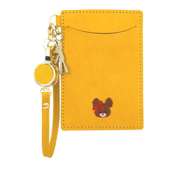 made in japanのレザーブランド「kissora」とのコラボレーション。両面にカードを入れられ、リールは取り外し可能。チャッキーのチャーム付き。