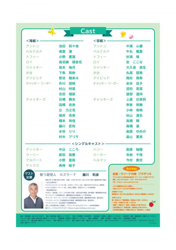 ・2歳児までは膝上観劇が可能ですが、お席が狭いため両サイドはお知り合いに座って頂くなど、ご配慮をお願い致します。難しい場合はチケットをご用意ください。