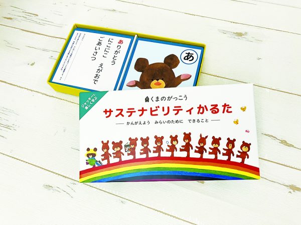 「くまのがっこうしょくいんしつ」では、園児の皆さんにもSDGsやサステナブル活動に興味を持ってもらいたいと考え、「くまのがっこうサステナビリティかるた」を製作しました。