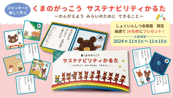 幼稚園や保育園でご活用頂けるよう、しょくいんしつ会員の方限定、20園にプレゼントいたします!