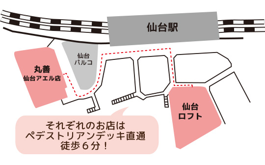 仙台ロフトと丸善仙台アエル店はどちらも仙台駅からすぐそば!ぜひこの春、ジャッキーに会いに仙台にあそびに来てくださいね♪