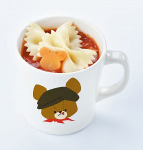 ホットミルクティー・ホットココアなどのホットメニューの他にも、アイスミルクティー・アイスココア、リボン型のパスタ入りのスープからも選べます。