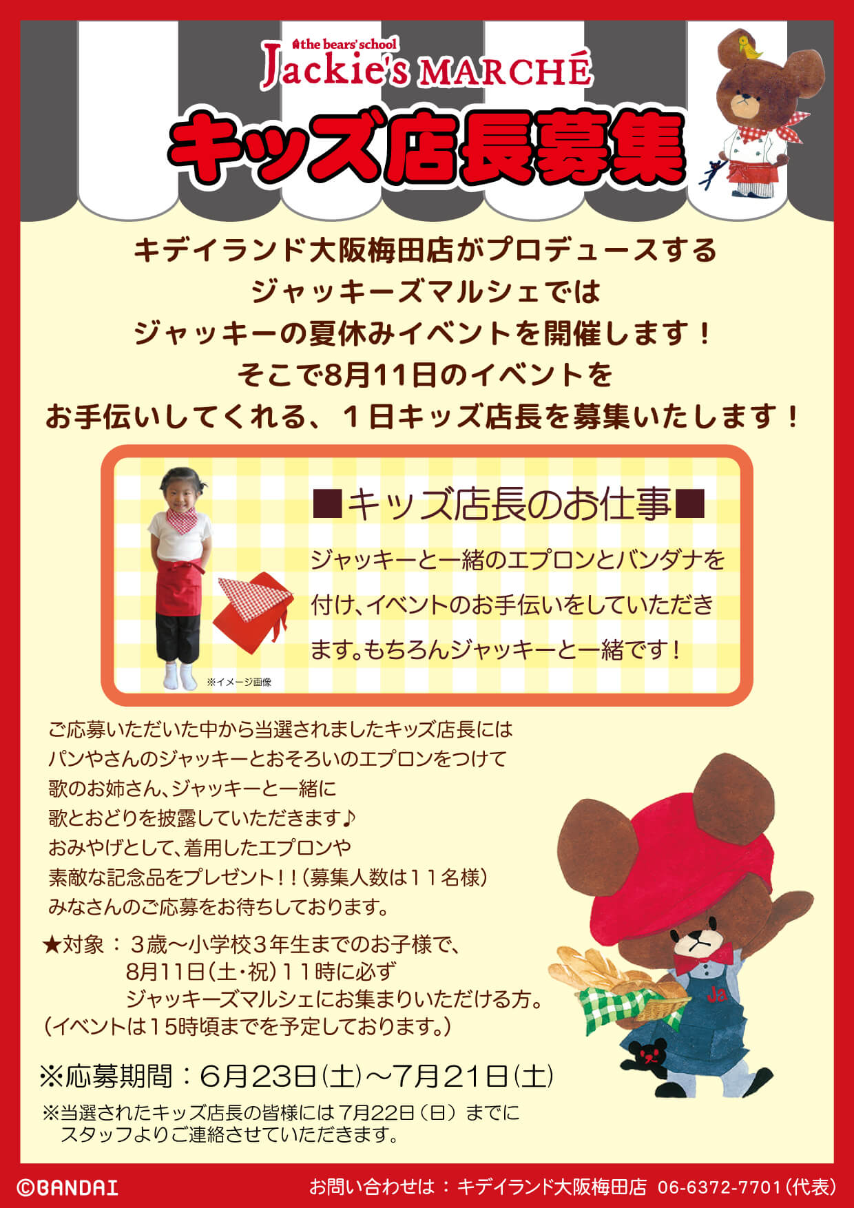 8/11(土)ジャッキーズマルシェ夏休みイベントキッズ店長募集!キデイランド大阪梅田店