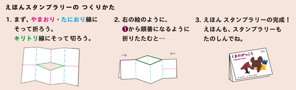スタンプ台紙は折りたたむと、コラボレーションのために描き下ろされたオリジナルストーリー「ときのおくりもの」の絵本冊子になります!
