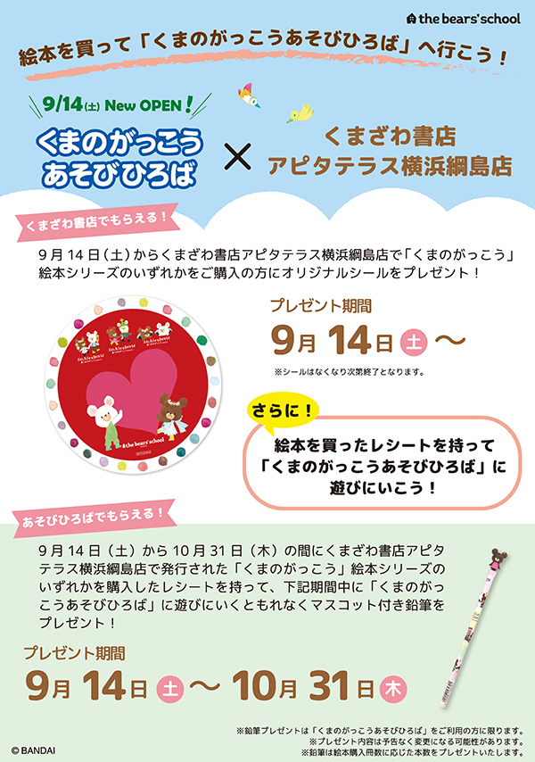 「くまのがっこうあそびひろば」として9/14(土)オープン!