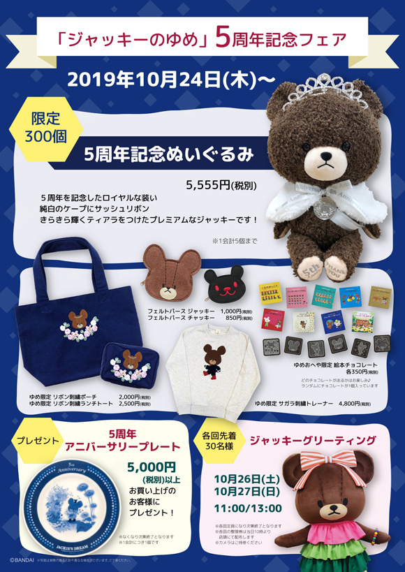 【終了しました】「ジャッキーのゆめ」東京駅店 5周年
