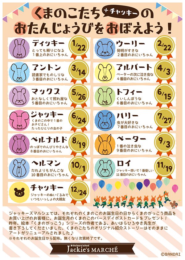 くまのこたちのお誕生日の日からお買い物してくれた皆様に