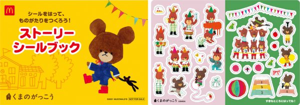 ハッピーセット「くまのがっこう」を1セットご購⼊につき「くまのがっこうストーリーシールブック」をプレゼント!