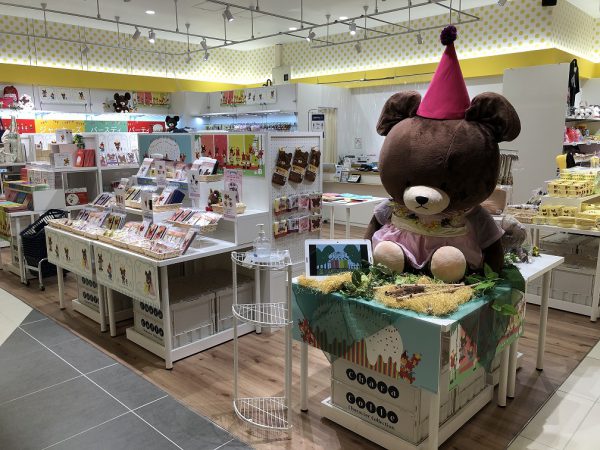 店内では、くまのがっこうグッズが勢ぞろい!ご自由に読んでいただける絵本コーナーもあります。