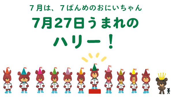 7月はジャッキーの7番目のおにいちゃん、「ハリー」のおたんじょうび![]()