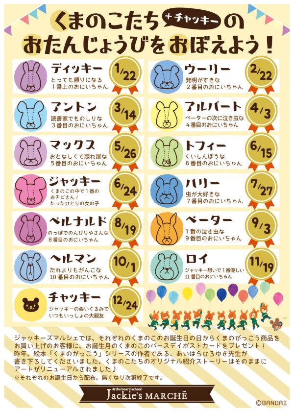 くまのこたちのお誕生日の日からお買い物してくれた皆様に