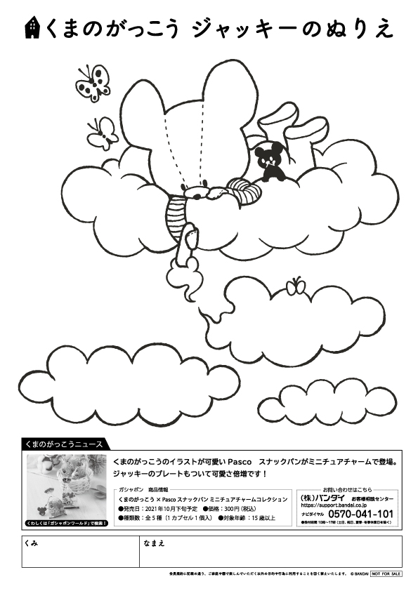 2つ目のぬりえは雲のおふとんでリラックス中のジャッキー。