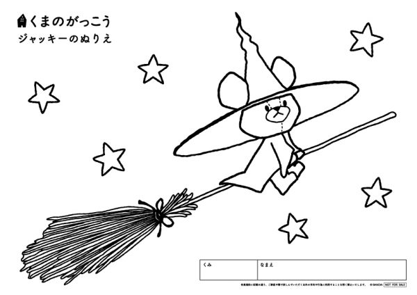 ほうきに乗ってお空を飛んでいるジャッキーのぬりえです。