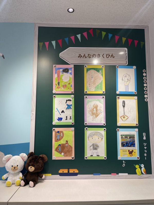 地域の子供達が描いたイラストやぬりえを展示するコーナー。