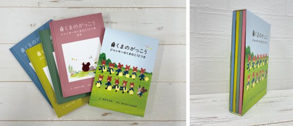 今回は、この全国巡回イベントだけの特別なノベルティをご紹介!2005年にくまのがっこう公式ホームページで展開していた「ちいさなおはなしWEB絵本」が4冊のミニブックになりました。季節ごとのくまのこたちのお話が1冊へ3話ずつ収録された、ここでしか読むことができない大変貴重な内容となっています。