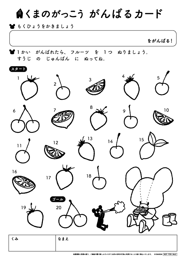 1回がんばれたら、フルーツを1つ塗ってね。