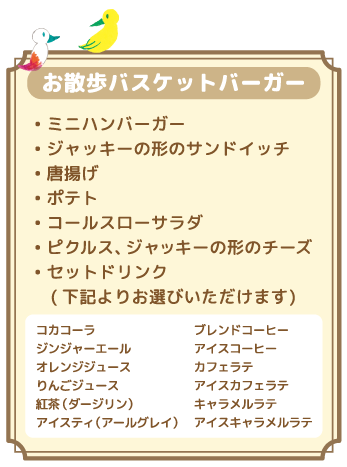 ぜひ、「ジャッキーとあそぼう!」ショップとハンバーガー&カフェ ルイスへお立ち寄りください。