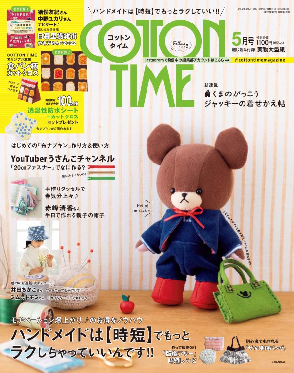 ハンドメイドマガジン『コットンタイム』4月7日発売の5月号より、手作りで「くまのがっこう」を楽しめる記事が連載スタートします![]()