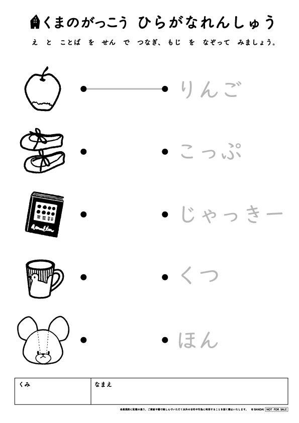 絵と言葉を線で結んだら、文字をなぞって書いてみてね。