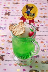 さくらんぼがアクセントのクリームソーダに、オーブンで焼いたピザ生地ジャッキーをトッピング。