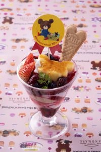 ベリーたっぷりのパフェには、ジャッキーのシルエット型の焼きプリンが乗っかった、夢のようなデザート♪