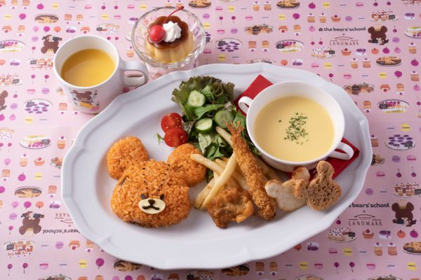 ジャッキーの形のチキンライスに、サラダ・フライドポテト・からあげ・スープ、さらにはデザート&ドリンクもついてくる大満足なワンプレート!