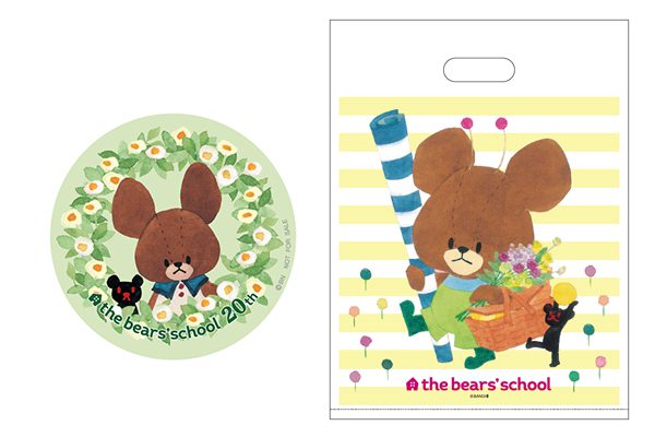 「くまのがっこう」の商品を1会計につき1点以上お買いあげのお客さまに、先着で「くまのがっこう20周年記念ステッカー」と「くまのがっこう ビニールショッパー」を各1枚ずつプレゼント!