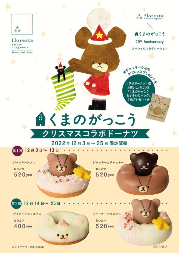 12/3(土)~12/25(日)自然な素材にこだわるドーナツ専門店「フロレスタ」にて期間限定で「くまのがっこう」コラボドーナツが発売されます!