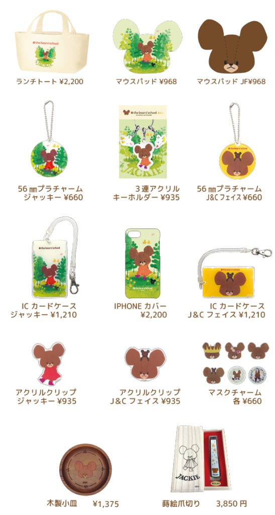 森をお散歩するジャッキーがかわいいイベントメインアート商品や、ジャッキーとチャッキーのお顔が並んだオーソドックスなデザインまで。全商品ではないですが、ズラリと並べてみました!あなたのお目当てはどれでしょう?