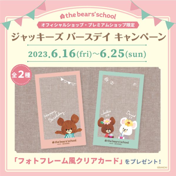 6/16(金)~6/25(日)くまのがっこうのオフィシャルショップ・プレミアムショップ限定で「ジャッキーズ バースデイ キャンペーン」を開催いたします![]()