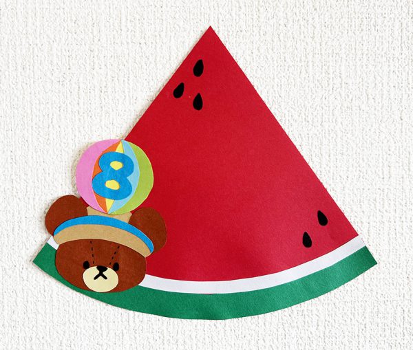まっかっかなスイカとビーチボール、麦わら帽子をかぶったジャッキーのデザインです♪