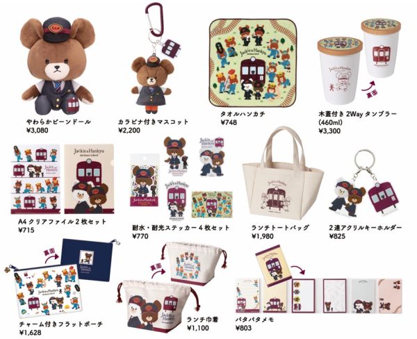 阪急電鉄の実際の制服をイメージしたワンピースを着たジャッキーのぬいぐるみやマスコット、初夏の行楽にぴったりなランチトートバッグやランチ巾着など、オリジナルデザインのコラボレーショングッズ(全11商品)を発売。