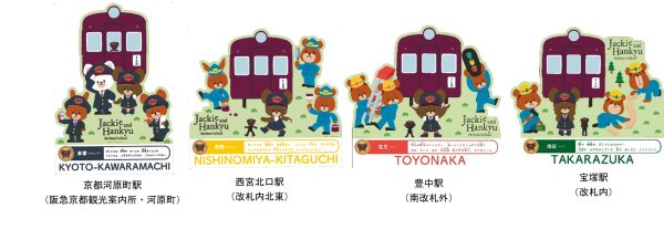 阪急沿線に設置された4か所(西宮北口駅、豊中駅、宝塚駅、京都河原町駅(阪急京都観光案内所・河原町))で、”でんしゃのおしごと”に挑戦するジャッキーとおにいちゃんが待っているよ。