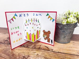 ペーパークラフトは父の日の制作にもぴったりな、かわいいケーキのカードです。