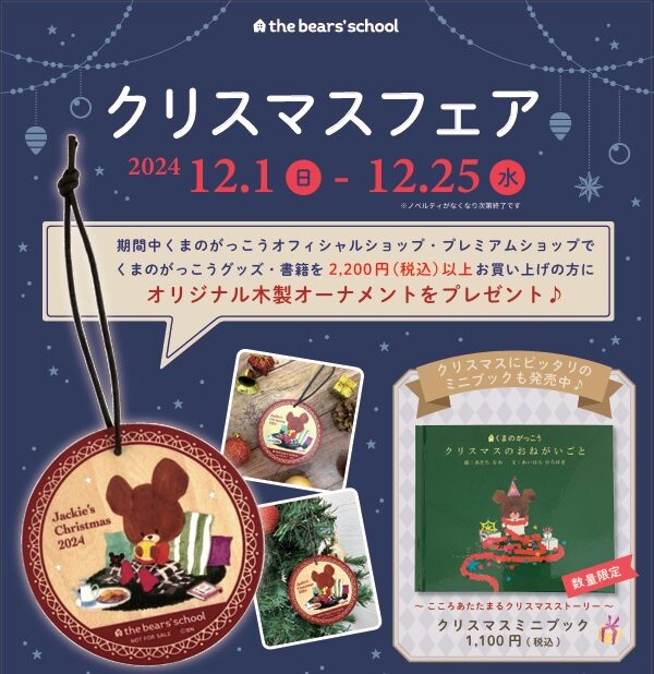 フェア期間中、対象店舗でくまのがっこうグッズを税込2,200円以上お買い上げの方に「オリジナル木製オーナメント」をプレゼント![]()