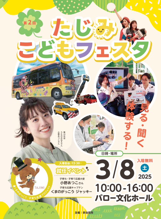 就任を記念し、3月8日に行われる「第2回たじみこどもフェスタ」にジャッキーが登場し、就任イベントが行われます!