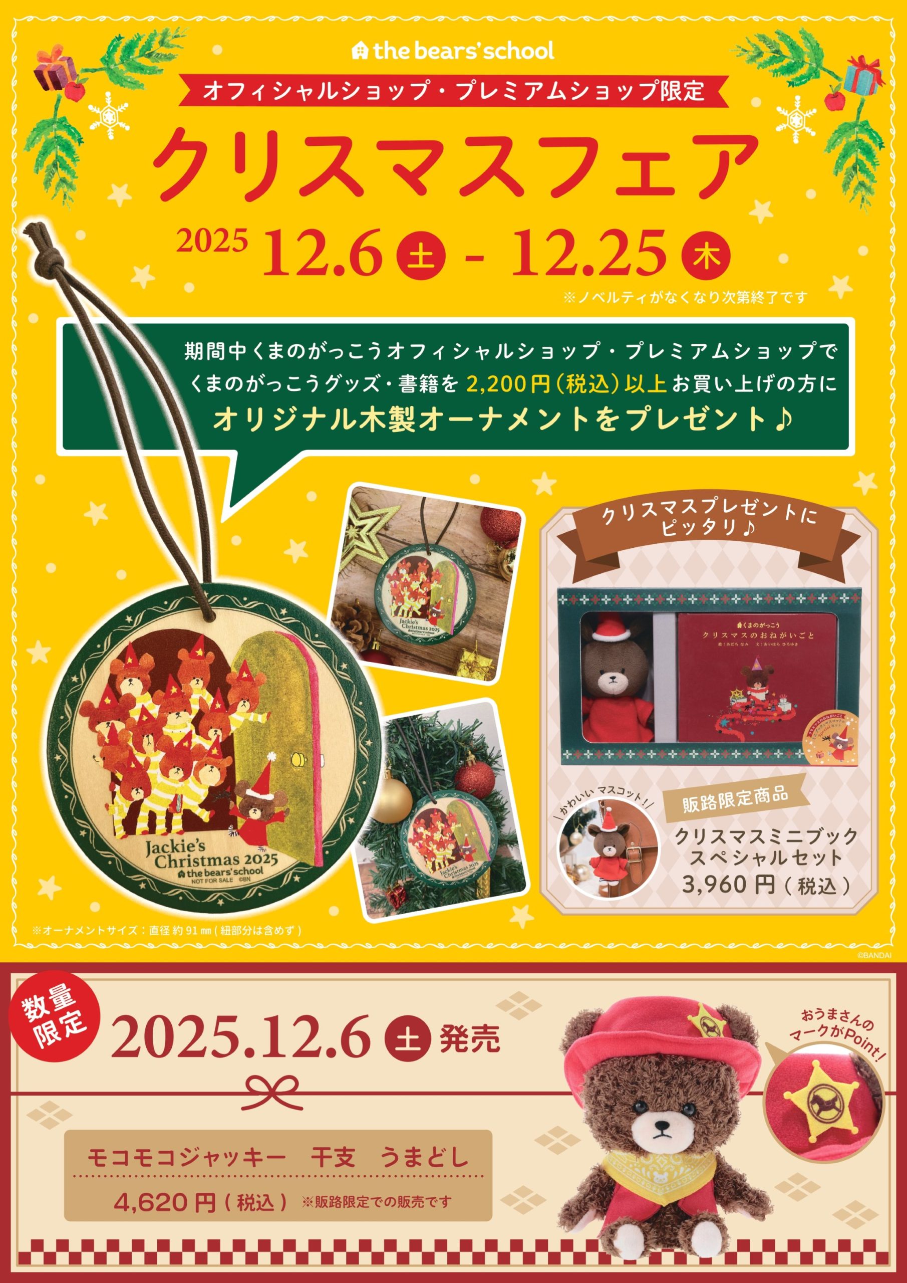 12/6(土)~12/25(木)くまのがっこうオフィシャルショップ・プレミアムショップにてクリスマスフェアを開催します![]()
