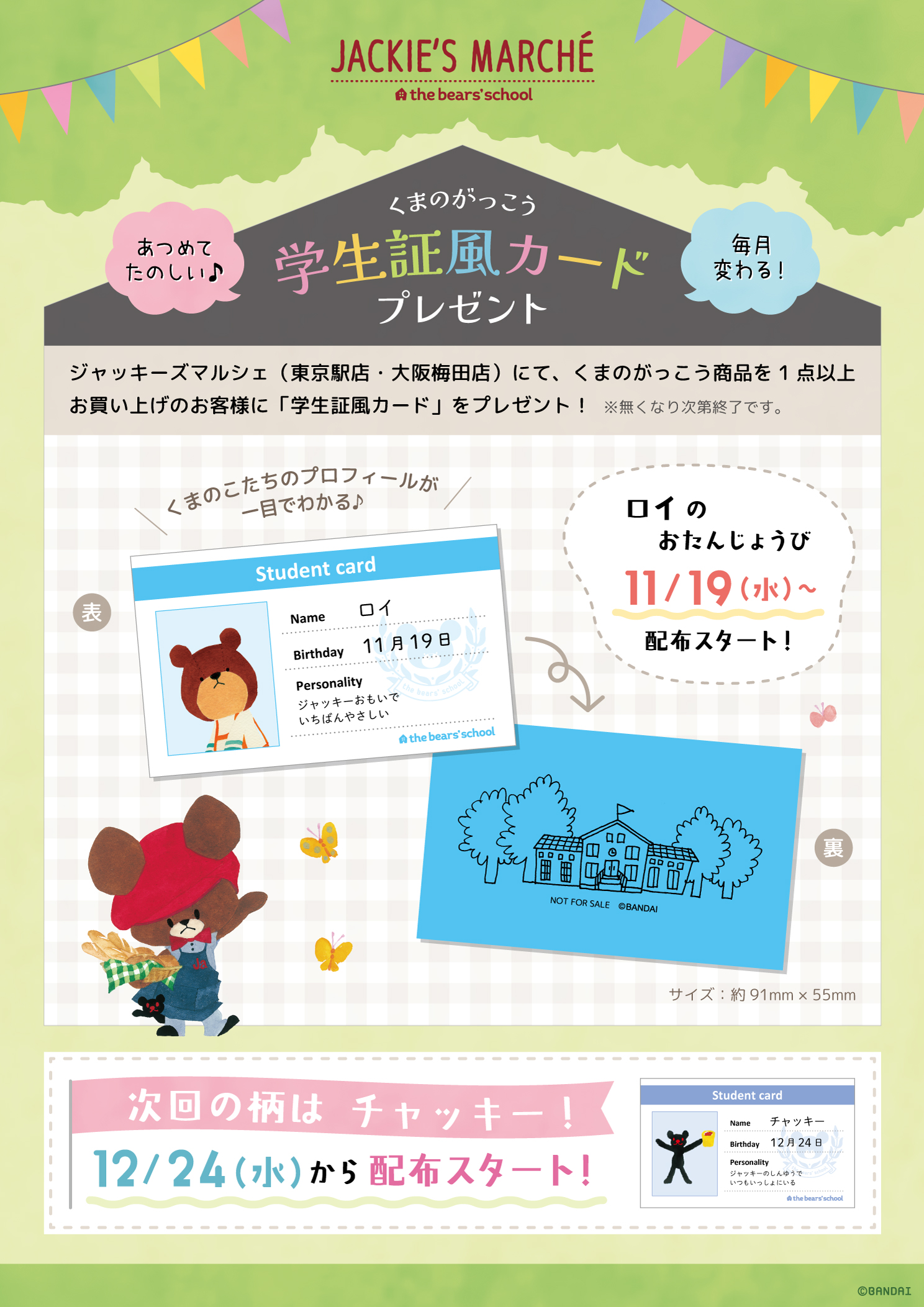 くまのがっこうグッズを1点以上お買い上げの方に限定ノベルティをプレゼントしています![]()