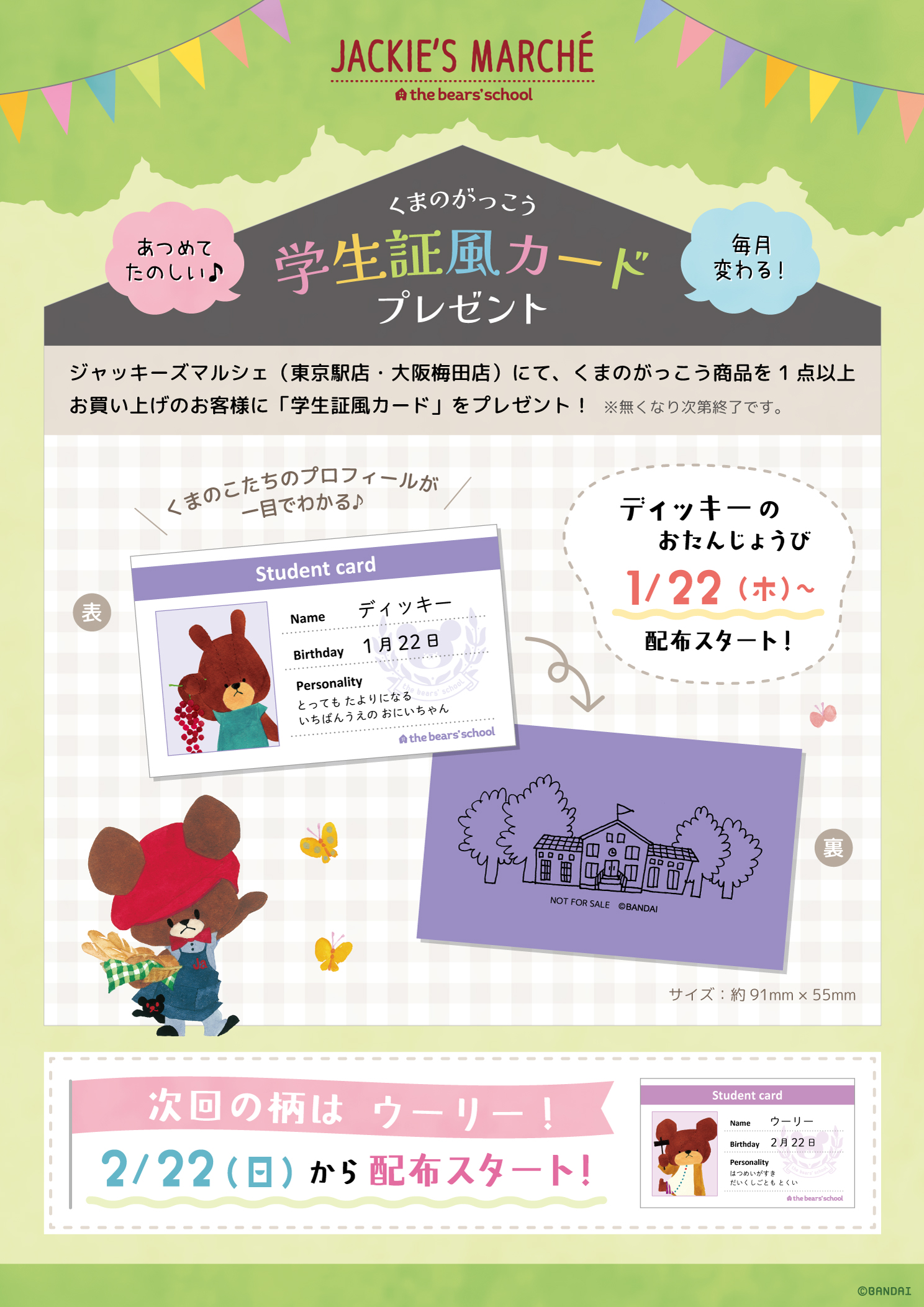 くまのがっこうグッズを1点以上お買い上げの方に限定ノベルティをプレゼントしています