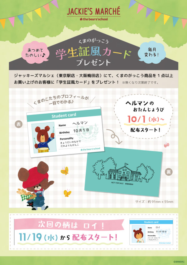 10/1~ヘルマンの「学生証風カード」をプレゼントいたします!