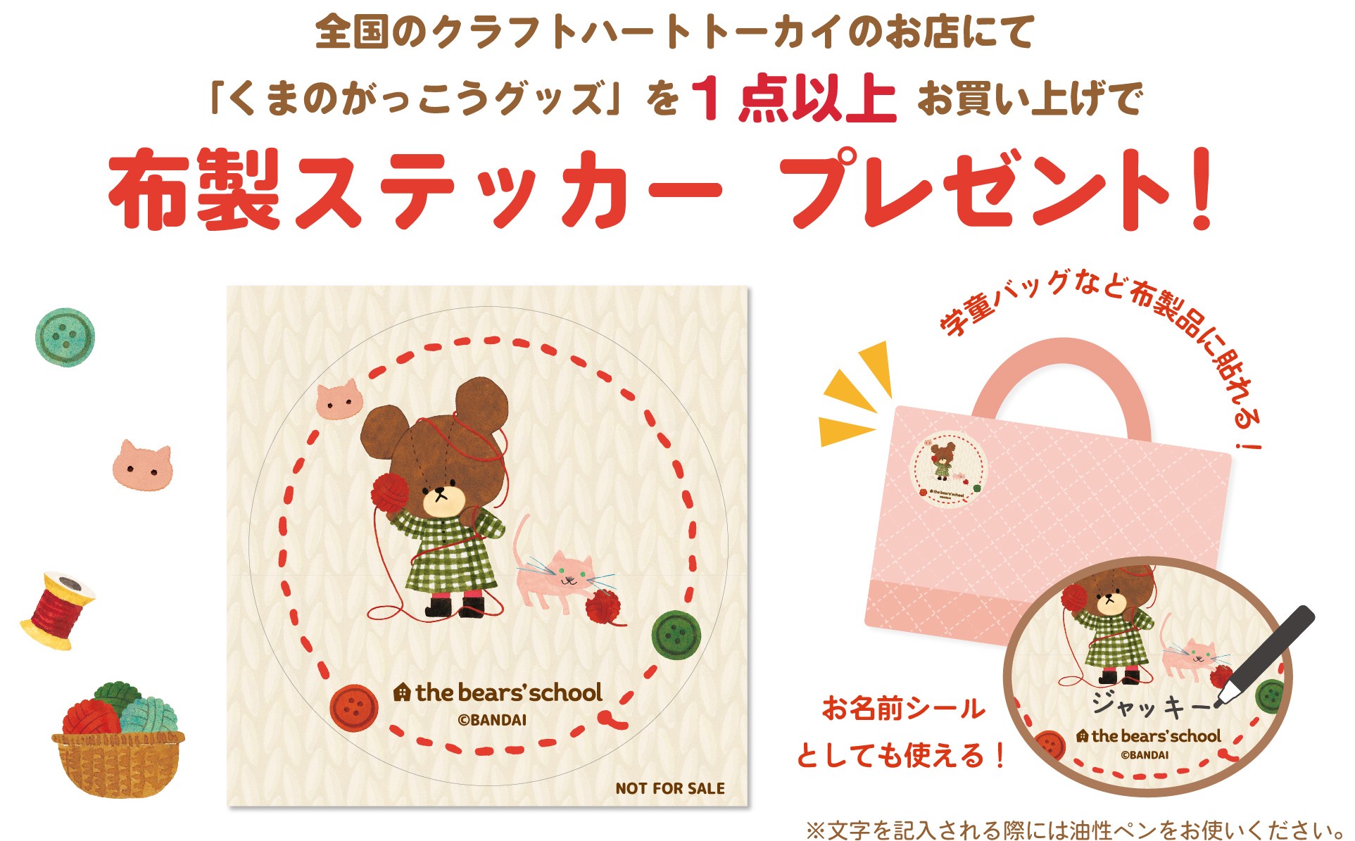 全国のクラフトハートトーカイ対象店舗にて「くまのがっこうグッズ」を1点以上お買い上げのお客様に