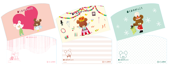 絵本「くまのがっこう」の中から人気の絵柄2種と、季節に合わせてクリスマス柄の全部で3種類。全部集めたくなる可愛さです!