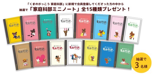 さらに、2023年1月31日までに会員登録してくださった方の中から抽選で3名様に「家庭科部ミニノート」全15冊がセットでもらえるキャンペーンも開催中です!