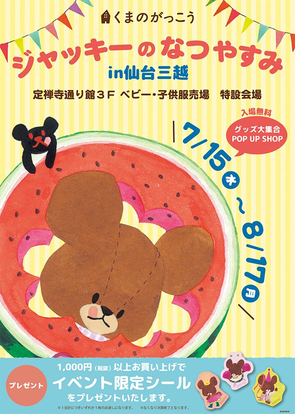 仙台三越 定禅寺通り館3F ベビー・子供服売り場 特設会場にてPOP UP SHOP ジャッキーのなつやすみ in仙台三越 を開催!