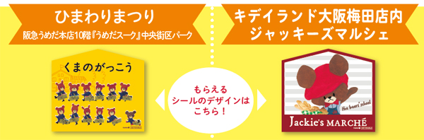 期間中、ひまわりまつり会場(うめだスーク)とジャッキーズマルシェ(キデイランド大阪梅田店)の2つのお店にて「くまのがっこう」のグッズをお買い上げの方へレジにてカードにスタンプを押します。