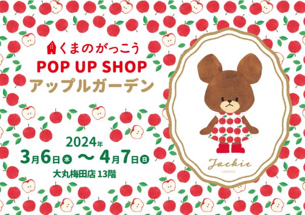 2024年3月6日(水)~4月7日(日)の期間中、大丸梅田店 13階 特設会場にて、くまのがっこうPOP UP SHOP アップルガーデンを開催します!